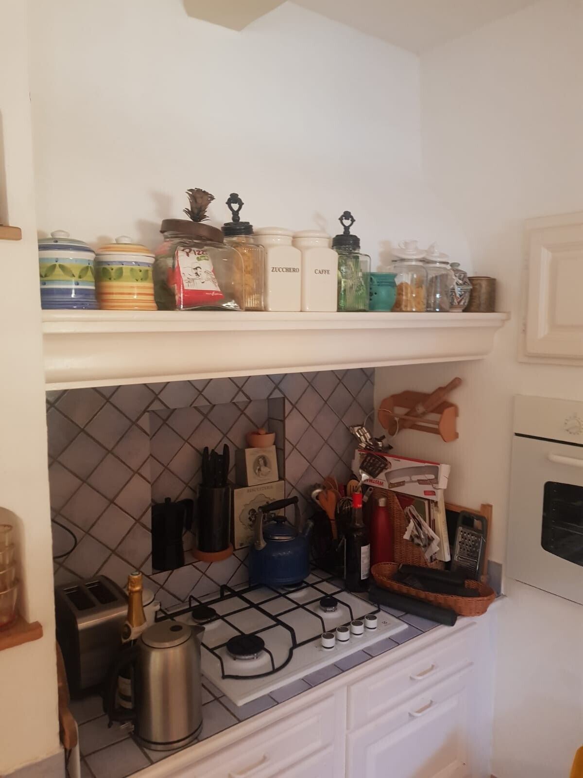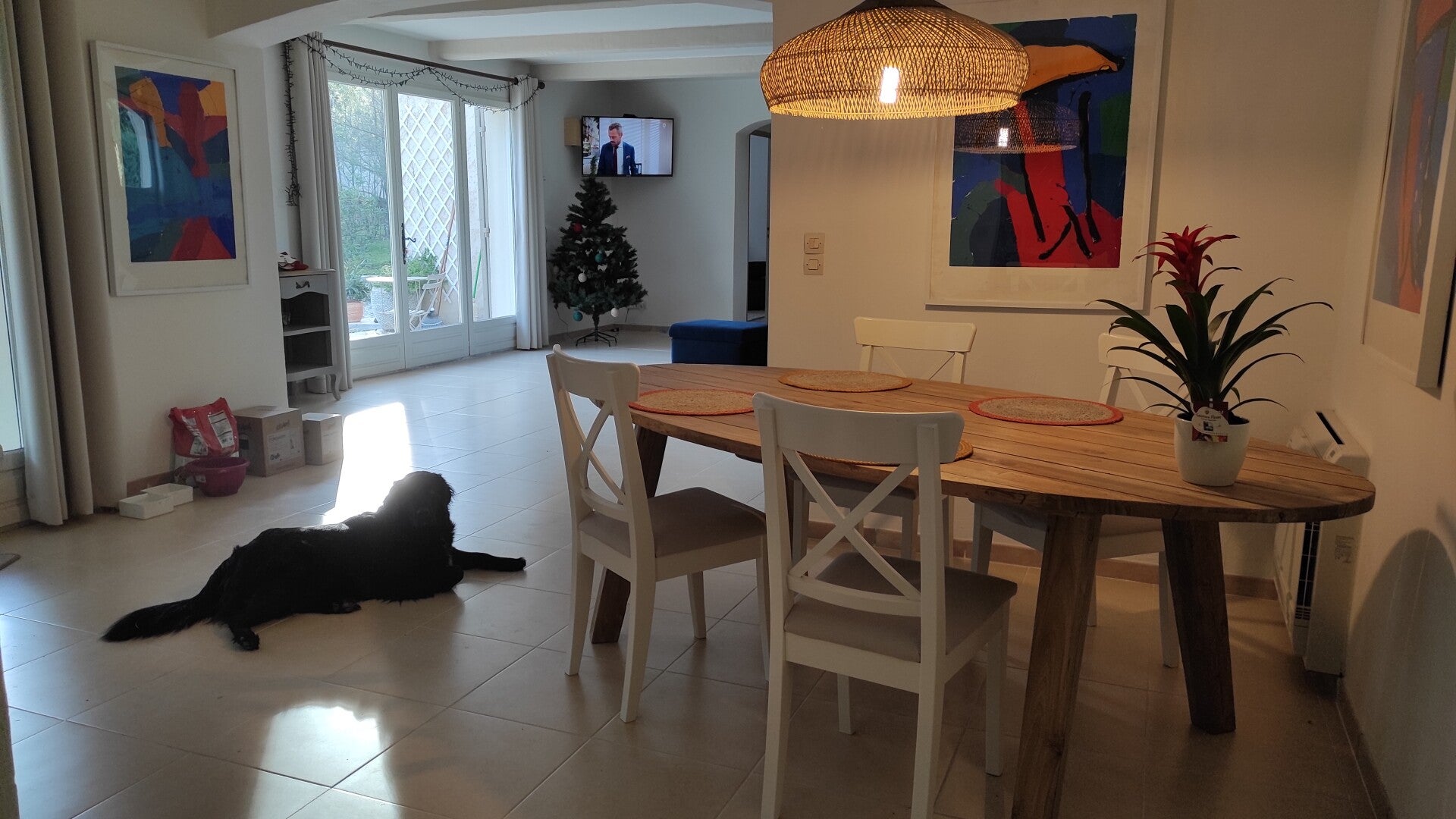 - 1 offene Küche mit Essbereich / Wohnzimmer mit offenem Kamin